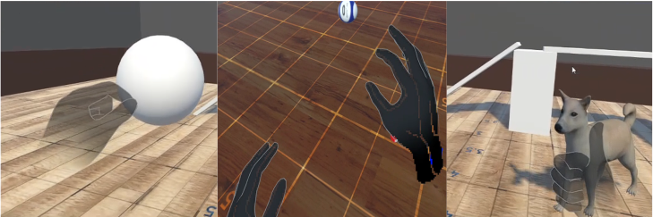 Ein Aspekt von VR, welcher einen großen Beitrag zum Erschaffen einer immersiven Nutzererfahrung leisten kann, ist die Steuerung und die Interaktion mit einer virtuellen Welt. Durch die Nutzung der eigenen Hände, also die Interaktion der Welt ohne Kontroller, kann die Immersion noch intensiver erzeugt werden. Während der Anfänge von VR konnte eine Gestensteuerung mit Händen größtenteils nur mithilfe von zusätzlicher Technologie, wie dem Leap Motion Controller bzw. externen Kameras, bewerkstelligt werden. Heutzutage besitzen VR-Headsets, wie z.B. die Meta Quest, eine integrierte Gestensteuerung, welche durch in dem Headset eingebaute Kameras umgesetzt wird. Gestensteuerung selbst kann wiederum auch sehr vielseitig genutzt werden. Am geläufigsten ist die einfache Interaktion mit der virtuellen Welt mithilfe der durch die Sensoren erfassten Hände, also beispielsweise das Aufnehmen und Platzieren von virtuellen Objekten. Jedoch können auch konkrete Handgesten über eine Gestenerkennung registriert und erkannt werden und mit einer Funktionalität hinterlegt werden, welche bei richtigem Erkennen der Handgeste abgerufen werden können. Dies ist besonders deswegen wichtig, weil ohne die zusätzlichen Buttons der Kontrollersteuerung die üblichen Steuerungsmöglichkeiten wegfallen. Für die Quest nutzt Oculus schon eine Form von Gestenerkennung, über welche beispielsweise eine einfache Menüsteuerung aktiviert werden kann, wenn eine konkrete Handgeste erfasst wird. Jedoch können von Nutzerseite keine eigenen Gesten angelegt und genutzt werden, um zusätzliche Interaktionen zu ermöglichen.