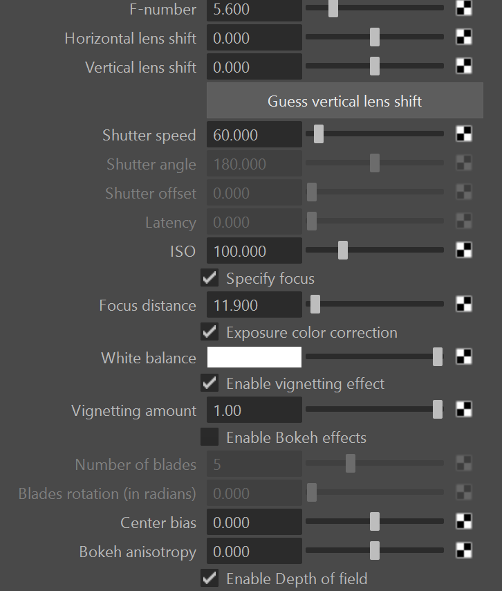 Als Rendercam wird eine neue Kamera angelegt und vor dem Zug in einer leicht erhöhten Perspektive, die an den Blickwinkel eines auf dem Boden sitzenden Kleinkindes erinnert, positioniert. Die Entfernung der Kamera zum Zug ist dabei entscheidend, um bei den entsprechenden Kamera-Einstellungen den gewünschten Tiefenschärfe-Effekt zu erzeugen. Der richtige Bildausschnitt wird daher nicht über die Position der Kamera sondern über die Brennweite des Objektivs angepasst. Wie bei einer realen Spiegelreflexkamera werden die Werte 1/60 s Belichtungszeit bei einem ISO-Wert von 100 und einer Blendenöffnung von 5.6 für eine Innenraum-Szene gewählt.
