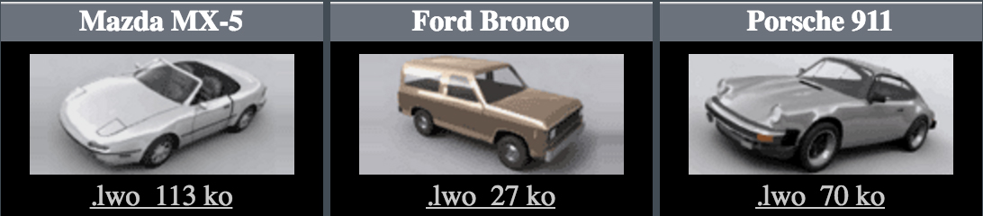 Eine schöne Sammlung von hochwertigen 3D-Modellen. Sortiert nach unterschiedlichen Fahrzeugtypen.